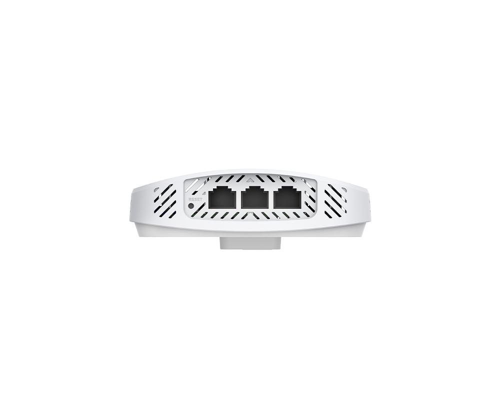 Equipped with one uplink and three downlink Gigabit ports, the Access Point (AP) extends wired connectivity for VoIP phones, PCs, printers, or smart TVs. One downlink port supports PoE passthrough, allowing you to power an additional device without the need for a separate power supply.