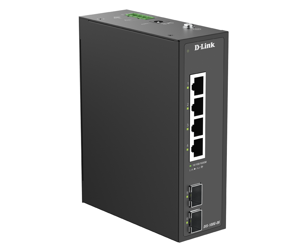 The DIS-100G-06 features two SFP ports that enable flexible, long-distance fiber connections, perfect for extending your network across remote sites or between buildings. Fiber optic cabling goes beyond the distance limitations of traditional Ethernet, offering high bandwidth and strong resistance to interference. This ensures stable, high-performance transmission in industrial environments where reliability is essential.
