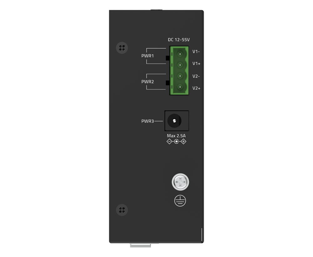 The DIS-100G-06 is equipped with dual power supply options. Each is capable of independently powering the device. This built-in redundancy ensures continuous operation even if one power source fails, minimizing shutdown risk and maintaining network performance. As industrial environments are common with unstable power conditions, its wide voltage range of 12 – 55V DC supports diverse power sources while protecting against surges and low voltage, delivering a stable and dependable power supply.