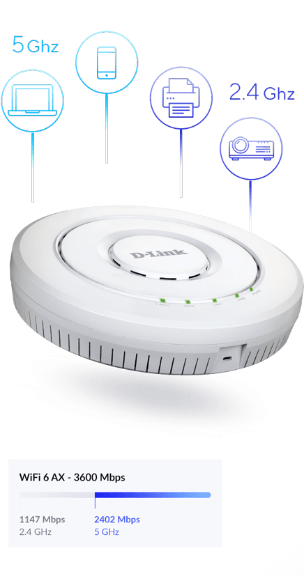 Het AX3600 Wi-Fi 6 Dual-Band Unified Access Point biedt de nieuwste wifi-technologie voor zowel kleine tot middelgrote bedrijven als enterprise ondernemingen. Het maakt deel uit van D-Link's Unified Wireless oplossing waarmee bedrijven een uiterst schaalbaar, flexibel en beheerbaar wifi-netwerk kunnen opzetten.