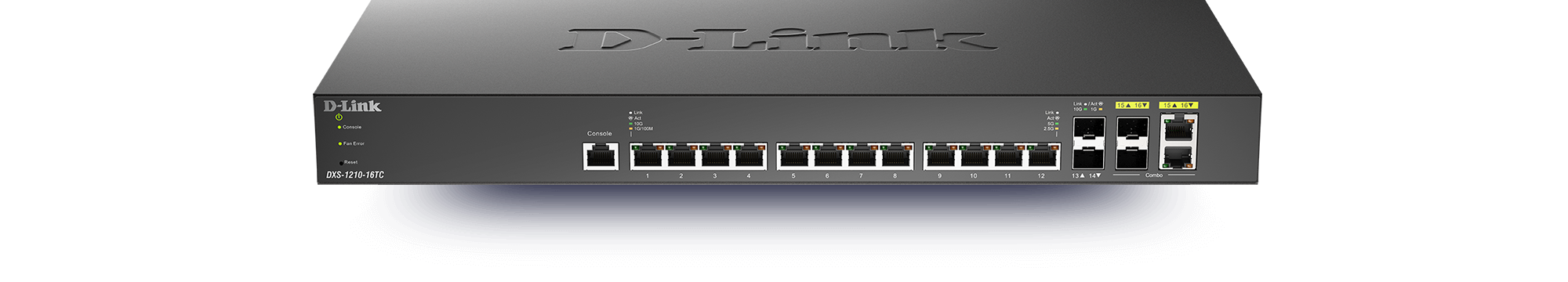 De DXS-1210-serie heeft zowel RJ45- als SFP+- poorten waarop cat. 6- en glasvezelkabels voor 10G Ethernet kunnen worden aangesloten. Dit betekent dat de DXS-1210-serie een flexibele oplossing biedt voor upstream of downstream serververbindingen, waardoor de netwerkimplementatie eenvoudiger wordt.