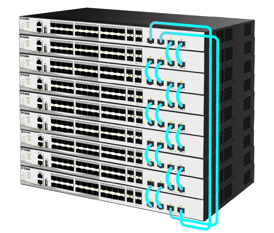 Schaal uw netwerk met de DXS-3130-serie door tot 9 switches te stacken in één fysieke of virtuele unit. Dit vereenvoudigt het management, verbetert de redundancy en maakt het mogelijk om de hele stack via één IP-adres te beheren. Met maximaal 200 Gbps verhoogt fysiek stacken de capaciteit om aan de groeiende netwerkvereisten te voldoen.