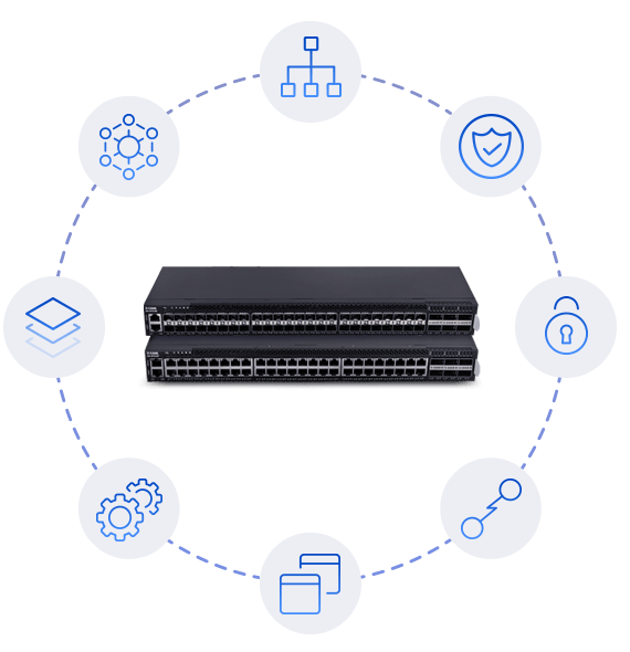 Bevat een breed scala aan Layer 2-, VLAN-, multicasting-, Quality of Service (QoS)-, beveiligings-, datacenter- en statische routingprotocollen, waaronder RIP, VRRP en OSPF.