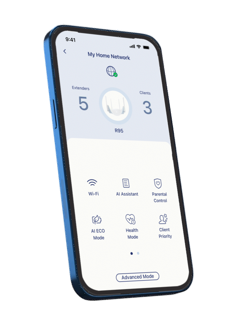 Beheer eenvoudig uw hele netwerk, optimaliseer de prestaties, bewaak verbindingen, blokkeer ongewenste apparaten, stel ouderlijk toezicht in, activeer wifi voor gasten en plan updates, allemaal in één krachtige app.