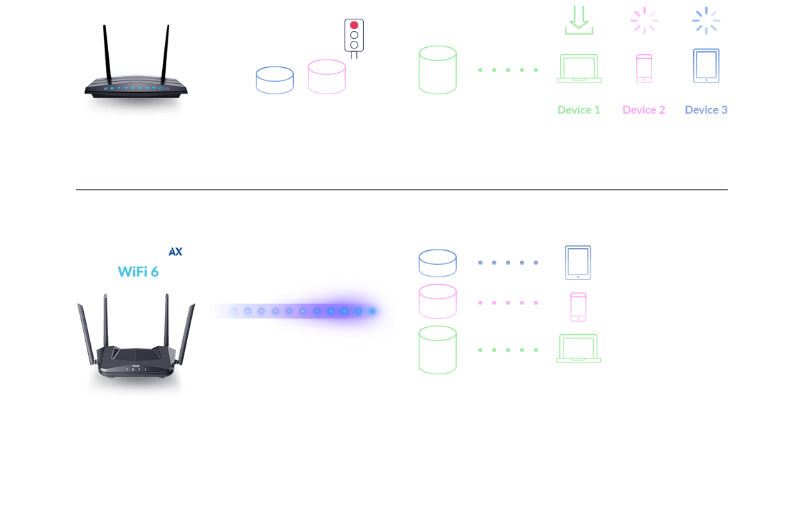 Wi-Fi 6 works by using 1024-QAM to provide a signal that packs in a lot more data, and a 80 MHz for a wider channel, that results in a lot faster Wi-Fi with unprecedented efficiency. Now you can enjoy more of the latest tech like virtual reality without any stutter, vivid 4K streaming, and faster file downloads.