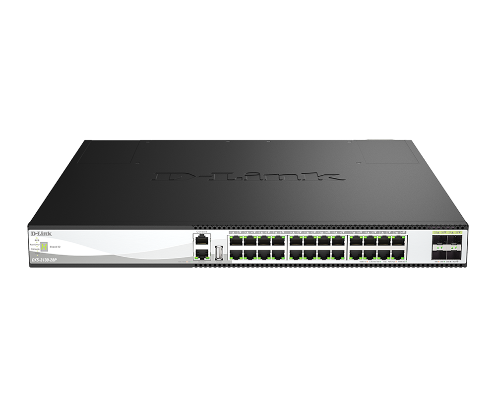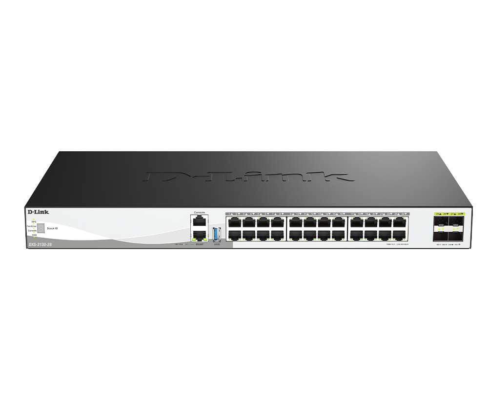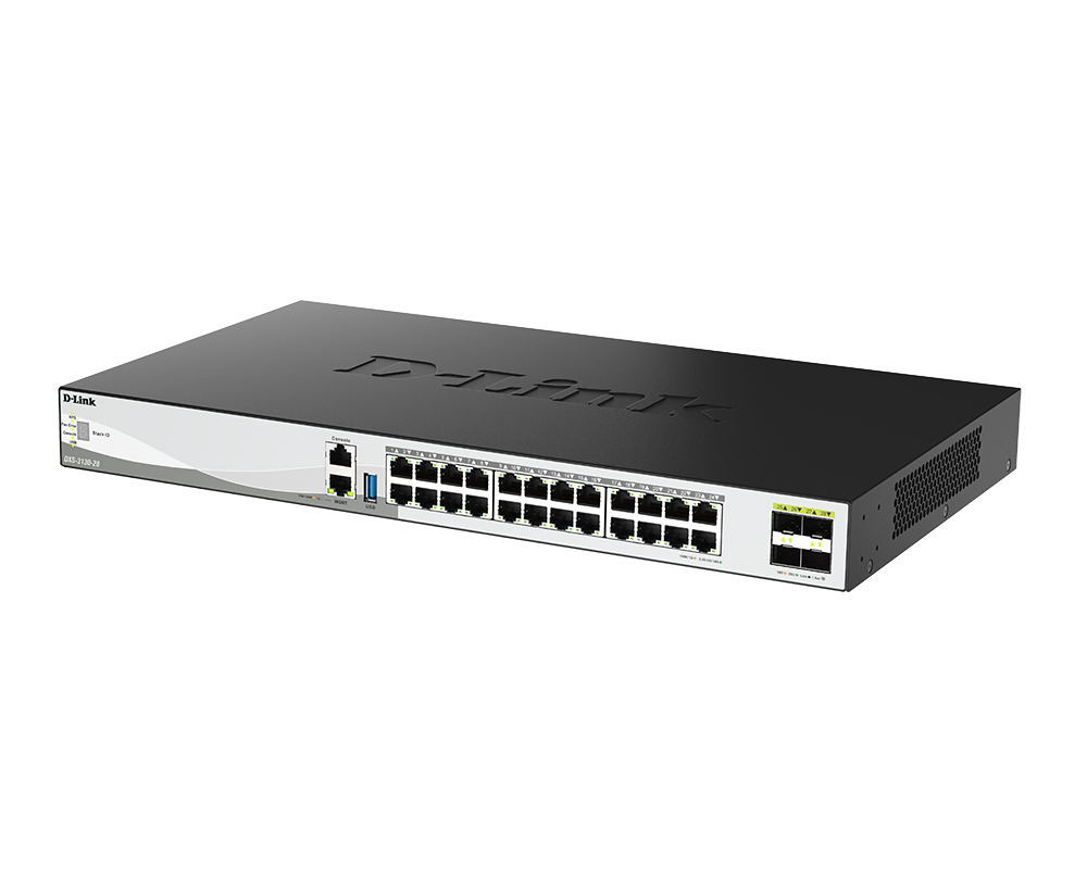Scale your network with the DXS-3130-28 by stacking up to 9 switches into a single physical or virtual unit. This simplifies management, improves redundancy, and allows control of the entire stack through one IP address. With up to 200 Gbps, physical stacking boosts capacity to meet growing network demands.