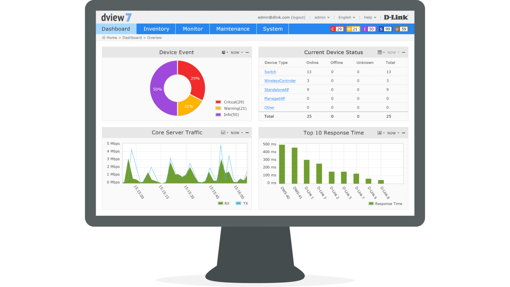 The graphical dashboard gives you the real-time monitoring status of your network. D-View 7’s highly customisable scheduling system, allows you to assign tasks to be issued during off-peak hours or any other planned maintenance time frame.