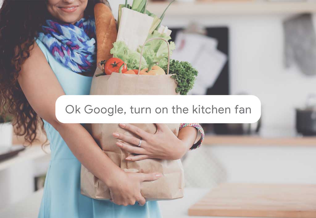 Tell your Google Assistant to turn on the kitchen fan.