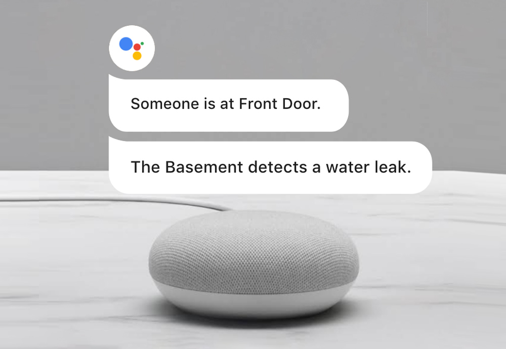 Receive verbal alerts from your Google Assistant whenever a person is detected by select cameras or whenever water is detected by your water sensors.