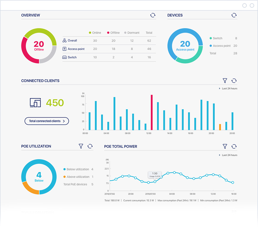 With D-Link Nuclias Cloud, businesses can organise their entire wireless network, manage multiple APs simultaneously, and monitor live network statistics. Now you can focus more on providing reliable connectivity and services and spend less time managing devices.