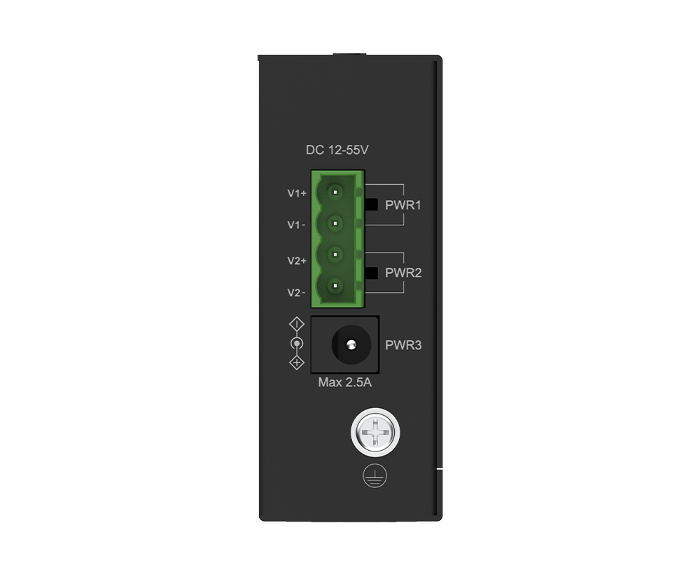 The DIS-100E-05 is equipped with dual power supply options. Each is capable of independently powering the device. This built-in redundancy ensures continuous operation even if one power source fails, minimizing shutdown risk and maintaining network performance. As industrial environments are common with unstable power conditions, its wide voltage range of 12 – 55V DC supports diverse power sources while protecting against surges and low voltage, delivering a stable and dependable power supply.
