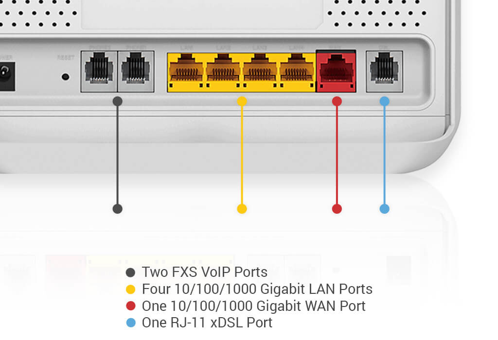 - ADSL2+ / VDSL2 modem for connecting to your high-speed broadband Internet connection