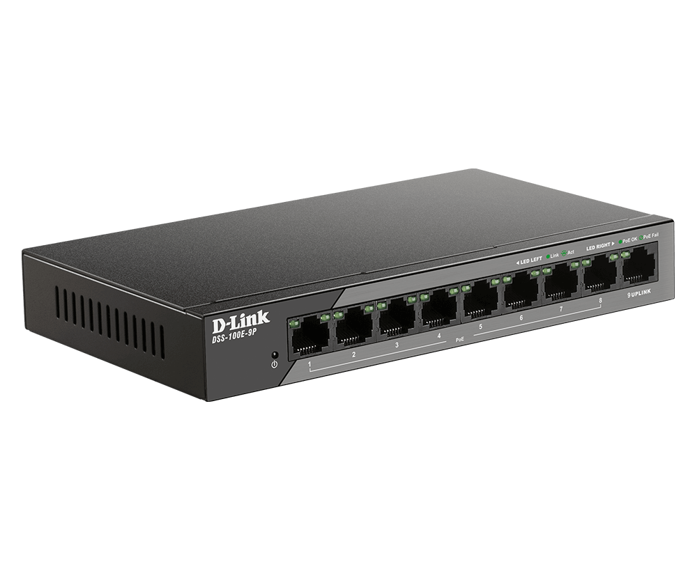 The DSS-100E-9P comes with powerful PoE capabilities. Able to supply up to 30W per port with a total power budget of 230W to devices up to 250m away, it can be the heart of your surveillance setup. Simply connect your PoE supported devices and you’ve got a capable surveillance network with minimal wiring required. Finally, its Gigabit uplink provides ample bandwidth. This ensures smooth transmission of footage when connecting to a Network Video Recorder (NVR) or core switch.