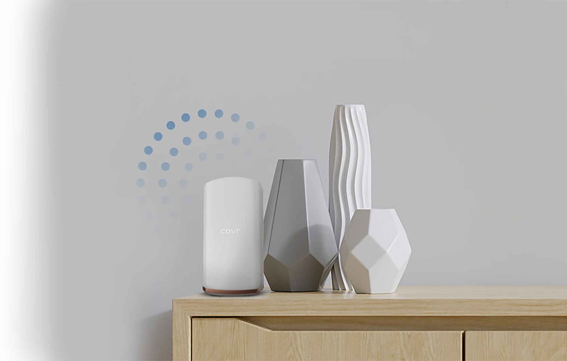 Covr’s soft-edged, discreet design features a soft white blacklight indicator to show you’re connected. No protruding antennas. No flashing red lights when you can’t get online.