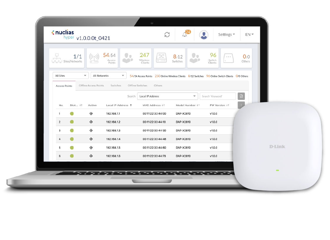 The DAP-E9560 integrates seamlessly with D-Link’s Nuclias Network Controller and software-based management platform, empowering businesses with centralized, remote management capabilities. Accessible from anywhere via an internet connection, this solution enables streamlined network control, automation, and effortless scalability. With built-in analytics and reporting, it delivers actionable insights across your network down to each access point for smarter decision-making.