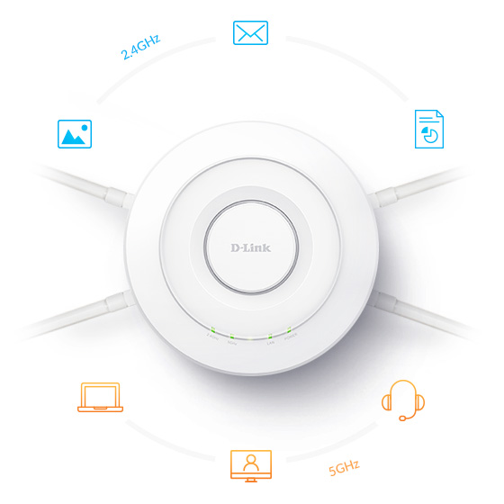 The DWL-8620AP’s 4 x 4 MU-MIMO takes full advantage of all streams to serve more wireless clients, dramatically improving wireless performance.