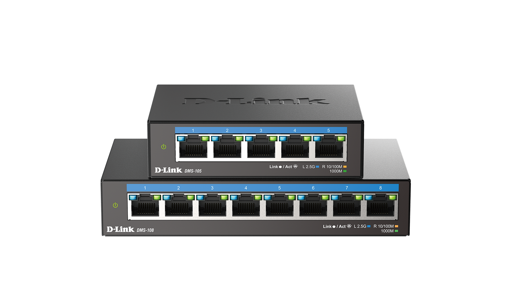 Switch with 2.5 Gigabit Ethernet ports that provides multi-speed transmission for high-performance Wi-Fi 6 networks, video streams allowing fast data transfers and maximising network bandwidth.