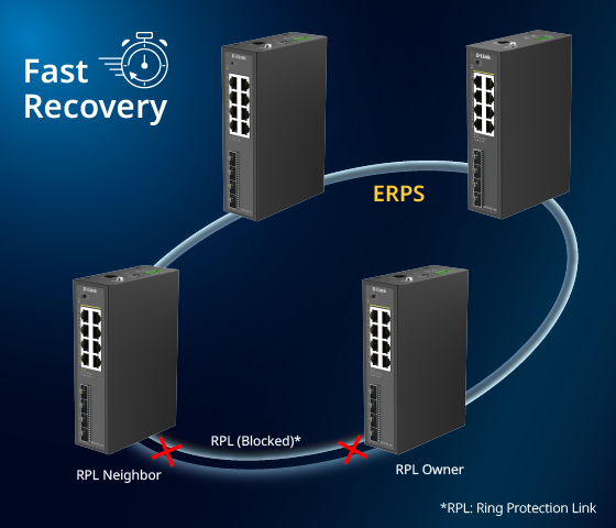 ERPS ensures fast recovery, reliable connectivity, and seamless network restoration