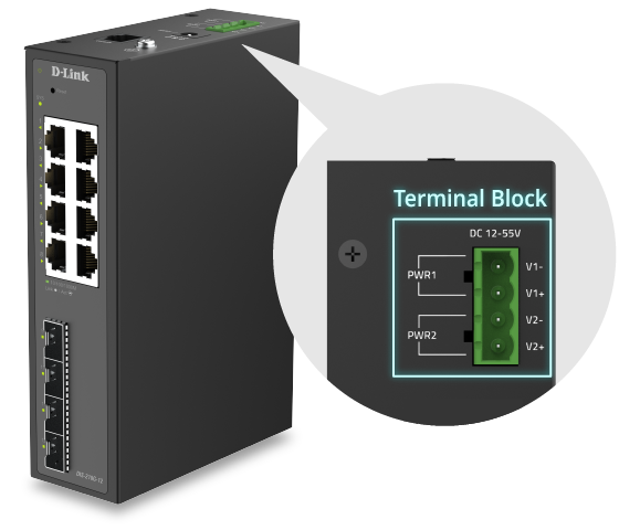 The DIS-210G-12 supports dual power supplies, and each is capable of independently powering the device. The redundancy ensures continuous operation when one power source fails, which minimises shutdown risk and maintains network performance.