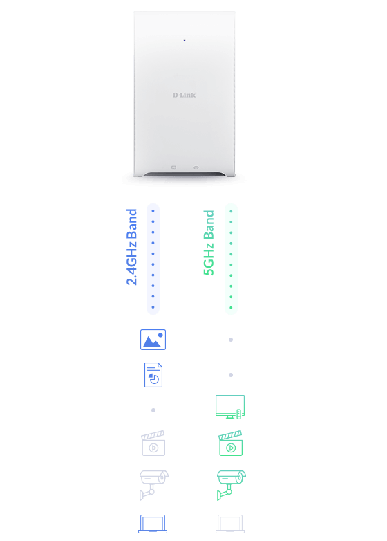 | Band steering Detects dual-band capable devices and automatically connects them to the less congested, faster 5 GHz band. |