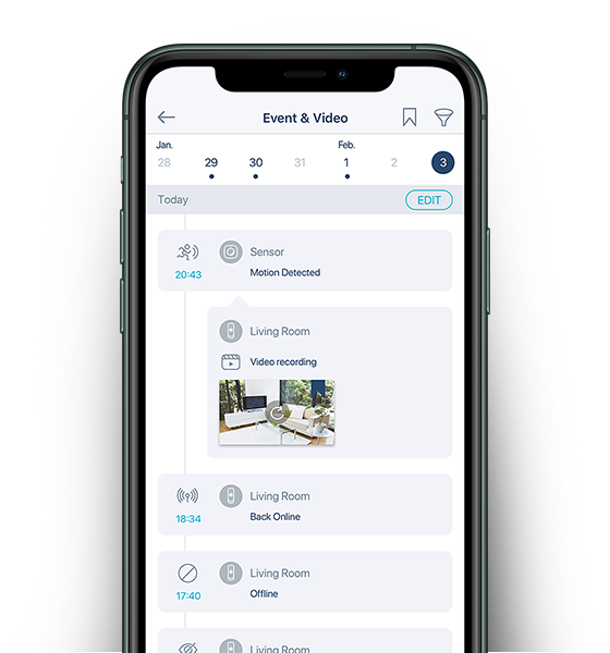Cloud recording gives you peace of mind, with videos automatically sent to the mydlink™ Cloud. Enjoy 1-year free 24‑hour footage retention, with optional premium Cloud storage plans starting at $4.99/month. Find any clip by filtering your recordings by Event Type, Date, Device, and Location. Know exactly what's going on - watch recordings from the Cloud or download videos clips to your phone anywhere, anytime.