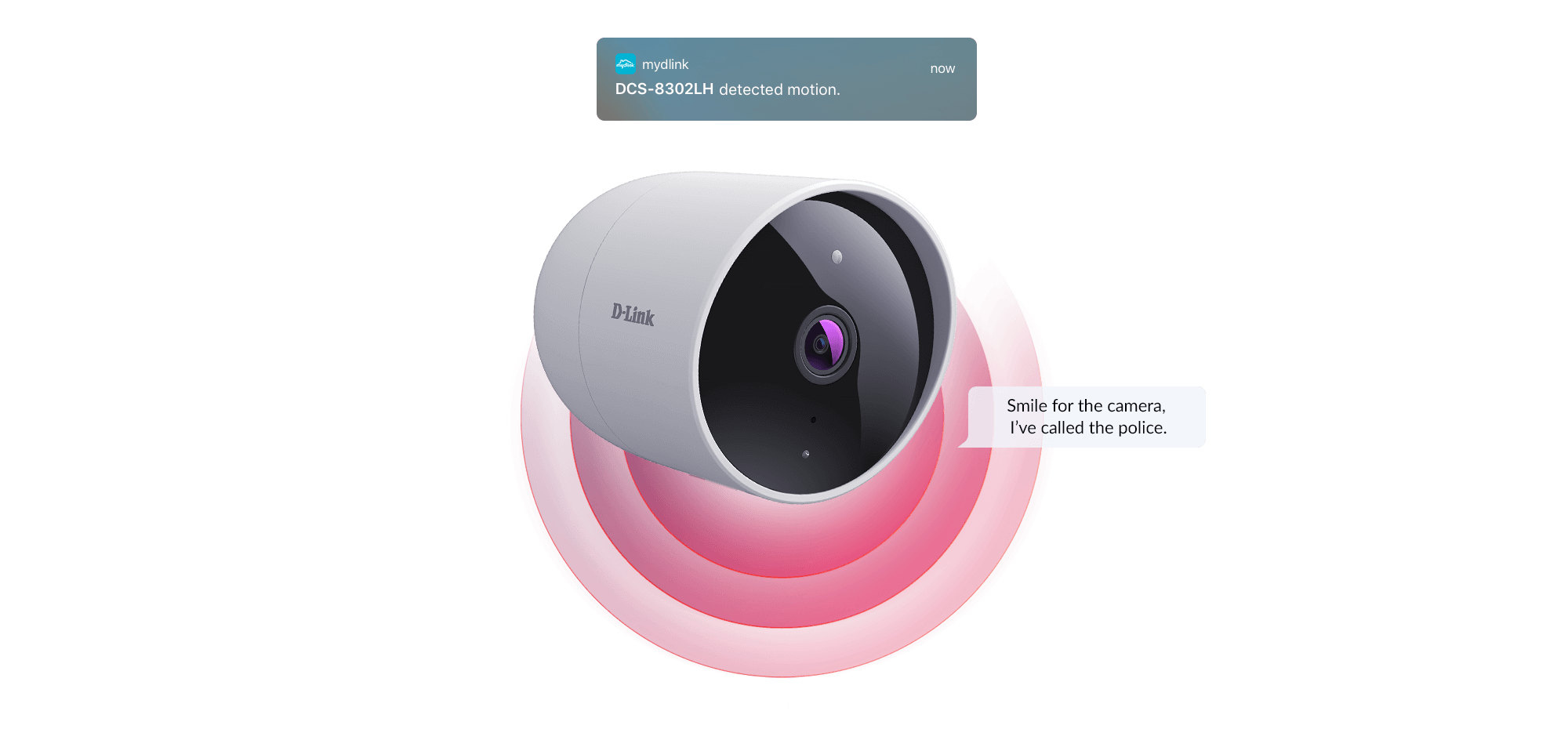 Rich push notifications allow you to see more of what's happening, and gives you the option to choose actions like see the Live View, or call a neighbour, all without unlocking your phone and logging into the mydlink™ app.