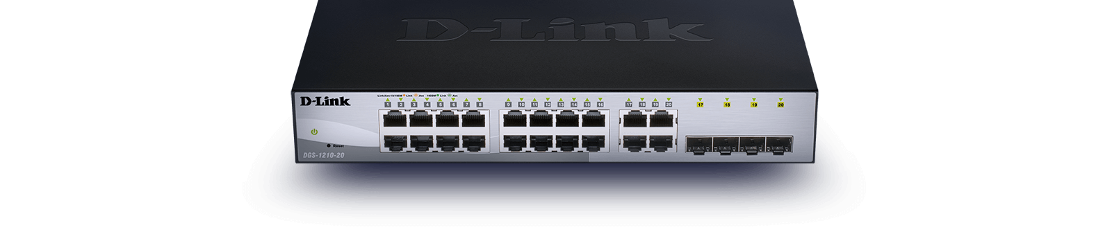 The DGS-1210 Smart+ family has advanced network management options, accessible via Compact CLI or the Web-based UI, that equip your business with network capabilities such as VLANs, multiple spanning tree protocol (MSTP), link aggregation (LACP), static routing, dual software images, and dual configuration files.