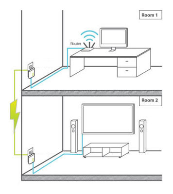 The DHP-701AV includes two PowerLine adapters, allowing you to get your home PowerLine network up and running right away. Simply connect one of the two included adapters to your router and an available power socket, and the other to another power socket where you need the internet connection.
