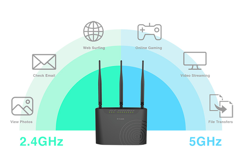The DSL-2877AL features dual-band wireless, allowing you to operate two concurrent, high speed Wi-Fi bands for ultimate wireless performance. Surf the web, chat, and play online games on the 2.4 GHz band, while simultaneously streaming digital media on the 5 GHz band. What’s more, each band can operate as a separate Wi-Fi network, giving you the ability to customize your network according to your connectivity needs. You can even configure a guest zone to give visitors Internet access without giving them access to the rest of your network.
