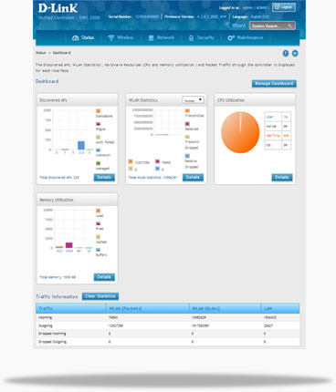 The ideal solution for businesses of any size, starting with just 8 Access Points and scaling to support 1024 APs in a clustered configuration. The DWC-2000 is the perfect solution for any business looking to enhance their wireless network with the minimal service disruption. With an extensive range of D-Link Unified Access Points and simplified management and monitoring tools the DWC-2000 is deployable anywhere, across any geography.