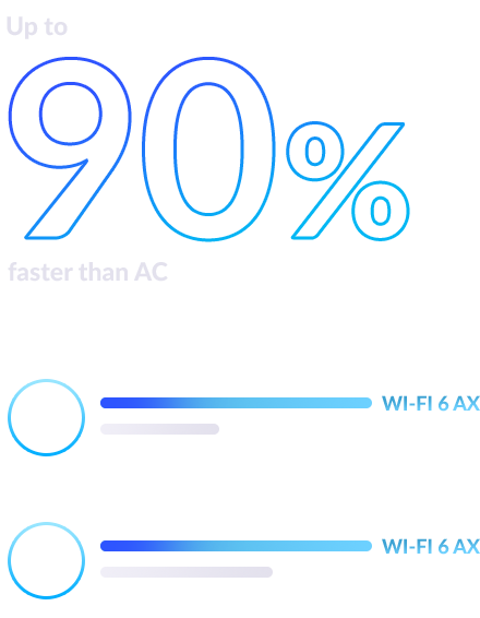 La technologie Wi-Fi 6 bibande (2,4 GHz + 5 GHz) vous aide à surmonter les limites du single tout en maximisant les avantages de chaque bande. Utilisé en combinaison avec le 1024-QAM, il augmente les vitesses de transfert de données physiques (PHY) maximales à des niveaux sans précédent.