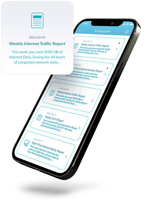 Votre Assistant personnel IA vous permet ainsi qu'à votre Wi-Fi, de rester à jour et de fournir des rapports hebdomadaires pour vous informer de ce qui a été fait et qui a accaparé le Wi-Fi.