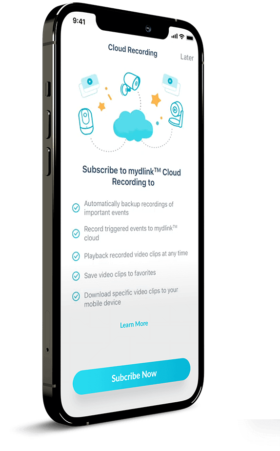 En optant pour un abonnement pour l’enregistrement dans le cloud mydlink™, vous pouvez être serein en sachant que vos enregistrements vidéo sont enregistrés automatiquement sur un serveur dans le cloud et qu’aucun intrus n’aura accès à vos vidéos.