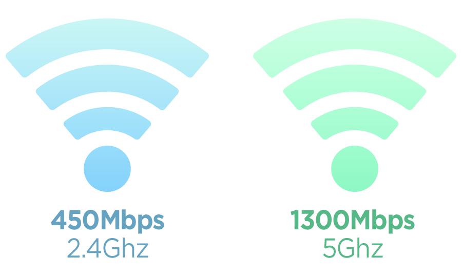 Up to 450 + 1300 Mbps combined Wi-Fi Speed