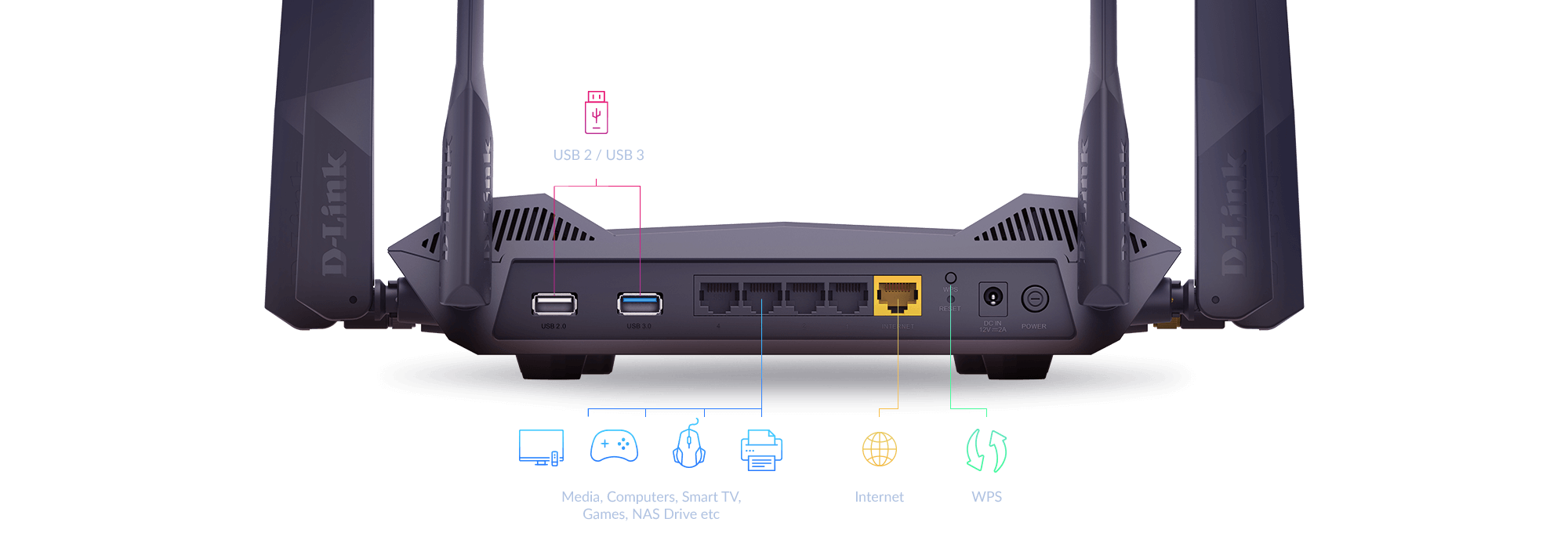 Doté d’une puissance de traitement bien plus élevée qu’un routeur Wi-Fi 5, le processeur triple cœur 1,5 GHz du DIR-X5460 peut s’attaquer à de grandes quantités de transferts de données, vous permettant de jouer sans décalage et de profiter du streaming 4k//HD sans mise en mémoire tampon.