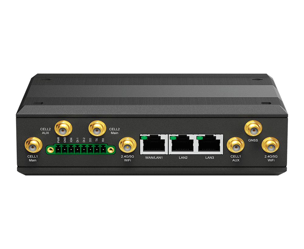 1 x 10/100/1000 Fast Ethernet WAN/LAN port 2 x 10/100/1000 Ethernet LAN port DI/DO/TX/RX/Grounding ports 1 x DC power input 4 x SIM slots (Two are optional) IGN (Ignition Sense) Power Control function |