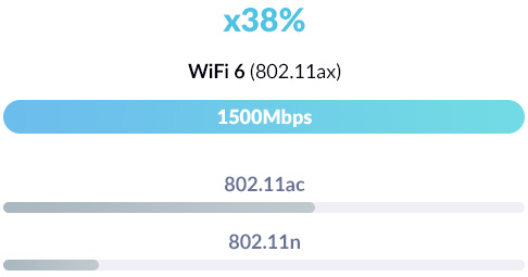 Bring home next-gen Wi-Fi 6 speeds of up to 1.5 Gbps. Experience a jump of up to 38% faster speeds than Wireless AC, for a better way to enjoy snappier browsing, 4K streaming and online gaming.