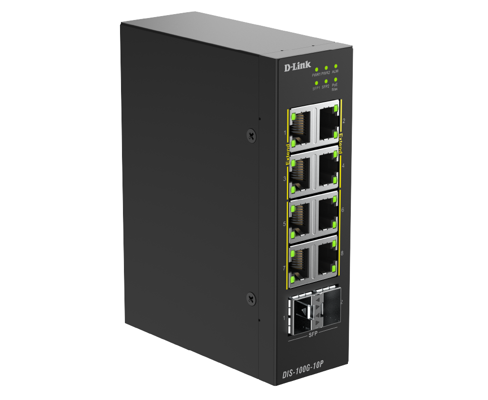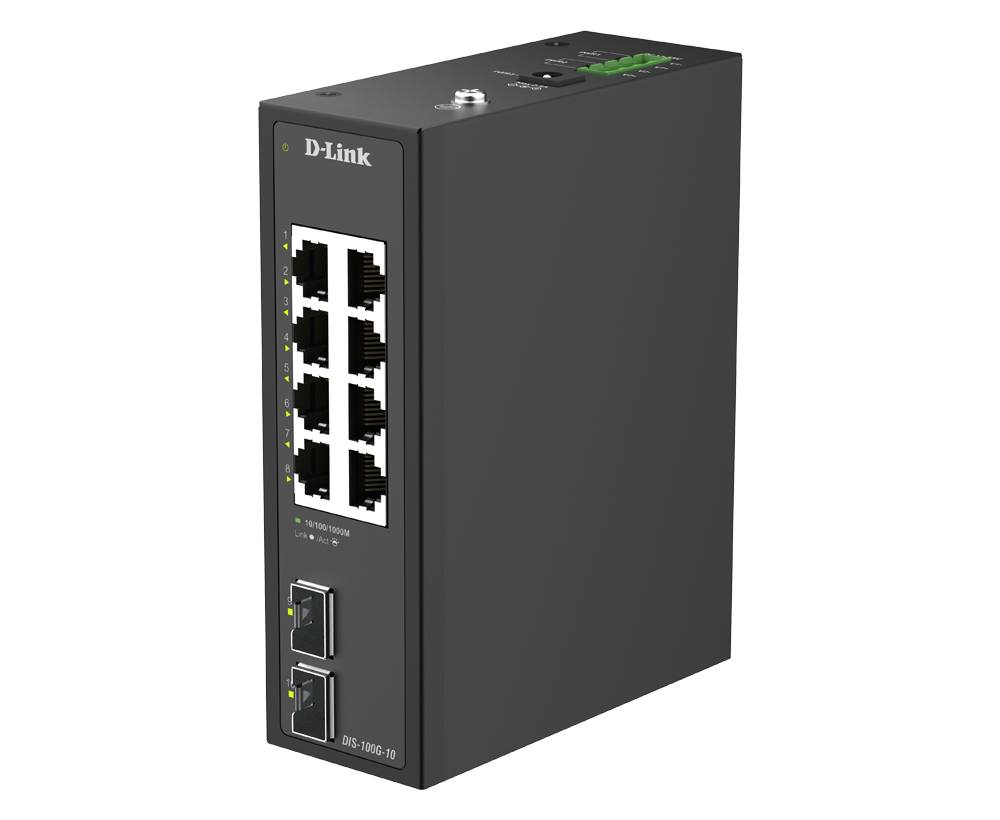The DIS-100G-10 is an industrial unmanaged switch equipped with eight 1G ports and two SFP ports, providing plug-and-play simplicity deployment. The SFP ports support long-range data transmission, removing the distance limitations of traditional Ethernet cabling. With reliable, high-performance operation, it ensures real-time data transfer and seamless connectivity for applications such as Kiosk, digital signage, LED displays, and more.