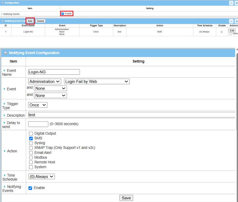 This feature is applicable to remote devices when someone else wants to log in to the device, so that users can get real-time responses, saving time and effort. In this example, we will demonstrate SMS configuration rules for M2M devices and how to set trigger events from M2M devices and send SMS messages to users instantly.