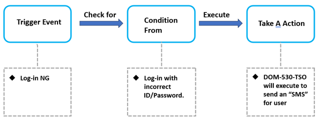 When someone tries to log in to the device web GUI with an incorrect ID or password, the DOM-530-TSO will send an SMS message to the user.