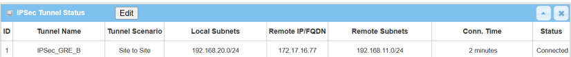 After the GRE tunnel is established, also test remote access from LAN clients by using ping <Remote LAN interface IP> or < Remote LAN device IP> within the Remote Subnet.