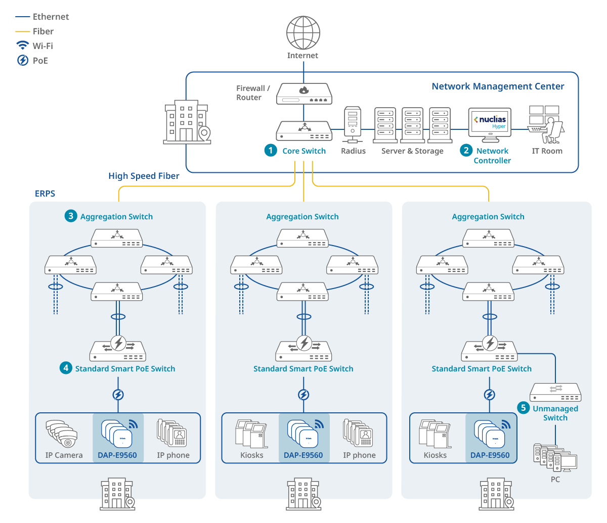 The DAP-E9560 integrates seamlessly with D-Link’s Nuclias Network Controller and software-based management platform, empowering businesses with centralized, remote management capabilities. Accessible from anywhere via an internet connection, this solution enables streamlined network control, automation, and effortless scalability. With built-in analytics and reporting, it delivers actionable insights across your network down to each access point for smarter decision-making.