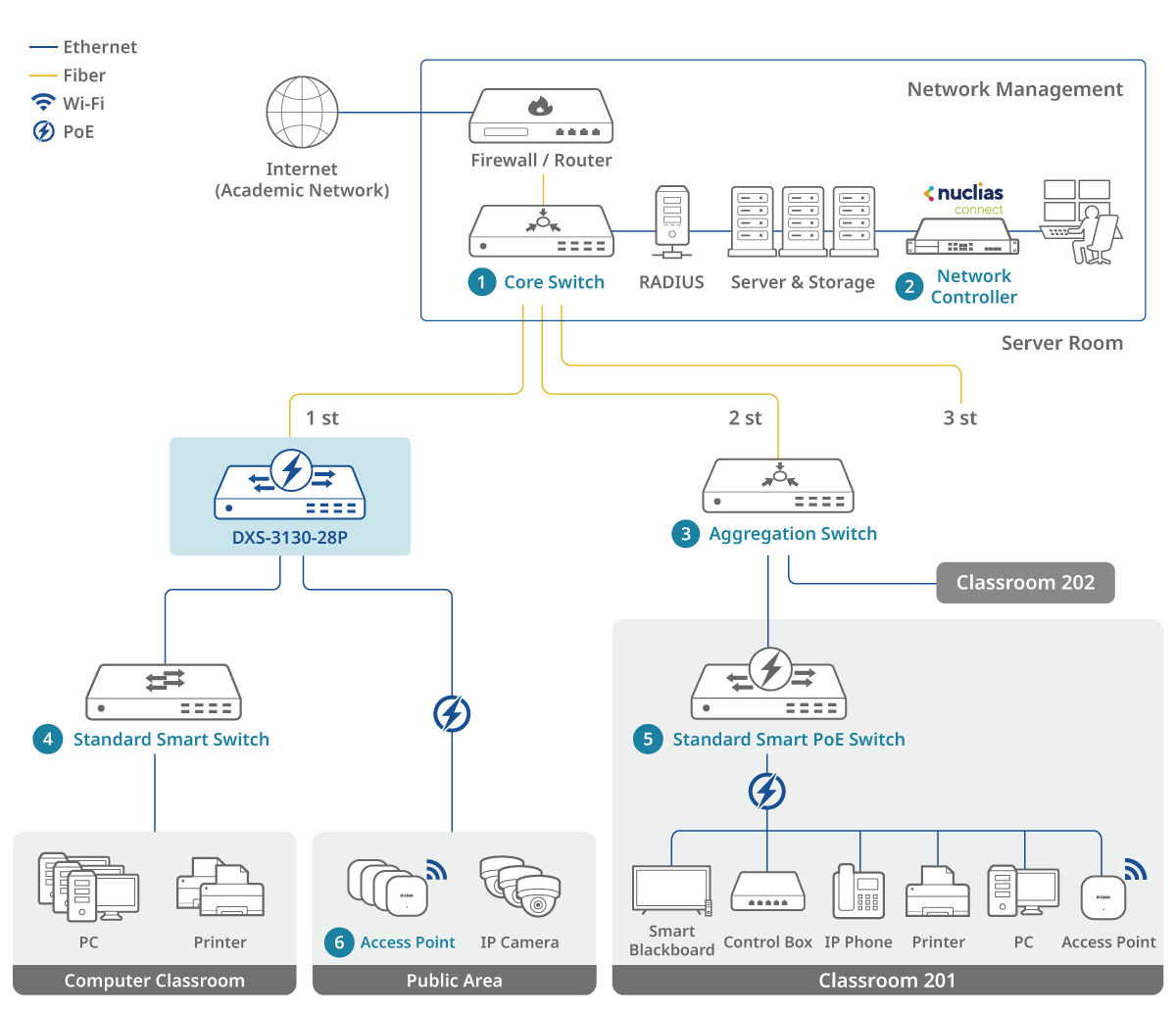 • VLAN and QoS optimize traffic for better learning experiences