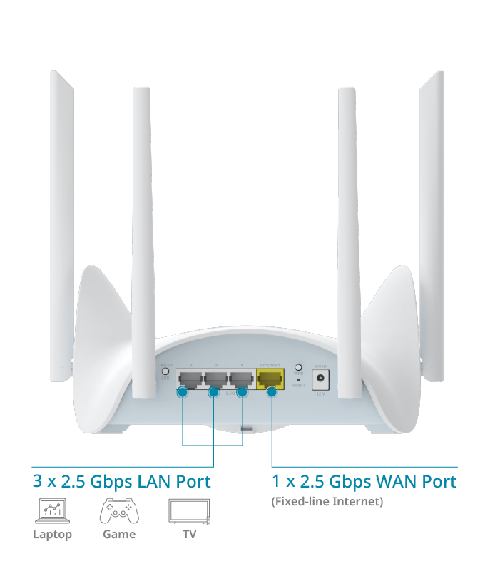 - Gigabit -anslutning: En 2,5-Gigabit WAN-port och 3 x 2,5-Gigabit LAN-portar