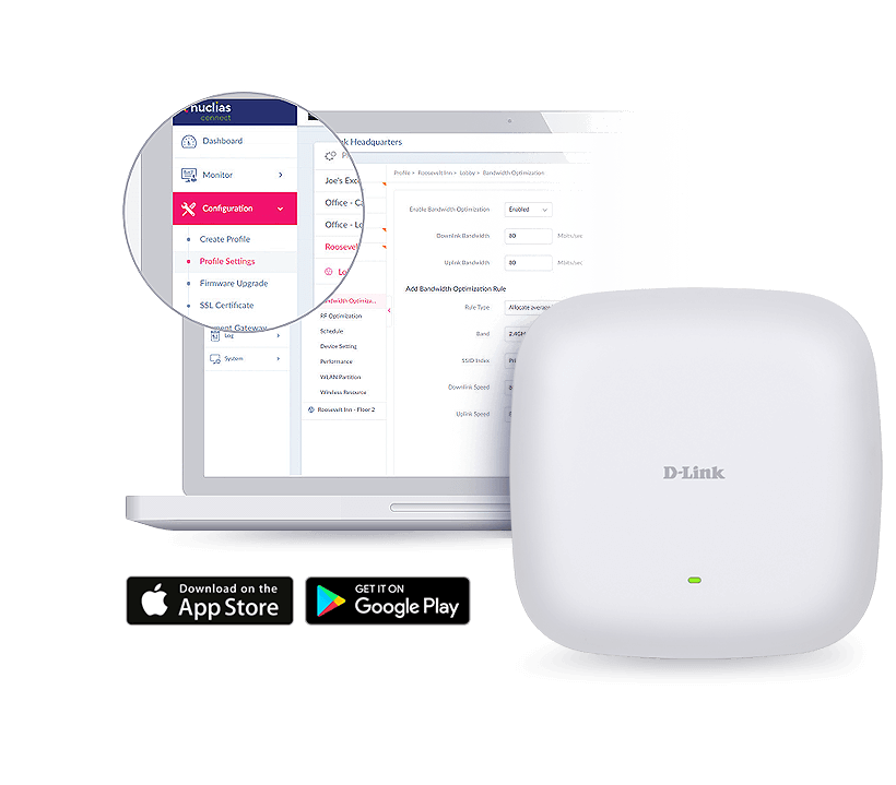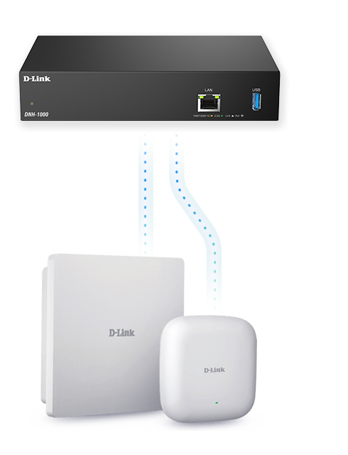 DAP-X2850 與 Nuclias Connect 搭配使用,Nuclias Connect 是一款可選擇搭配硬體控制器 (DNH-100) 的軟體型管理平台,可部署在本地端使用,也可以作為託管在公有雲服務上的雲端解決方案。管理者可透過 Nuclias Connect App/伺服器/PC端軟體,快速執行各項管理作業,實現輕鬆存取、自動化和無線網路擴充性。
