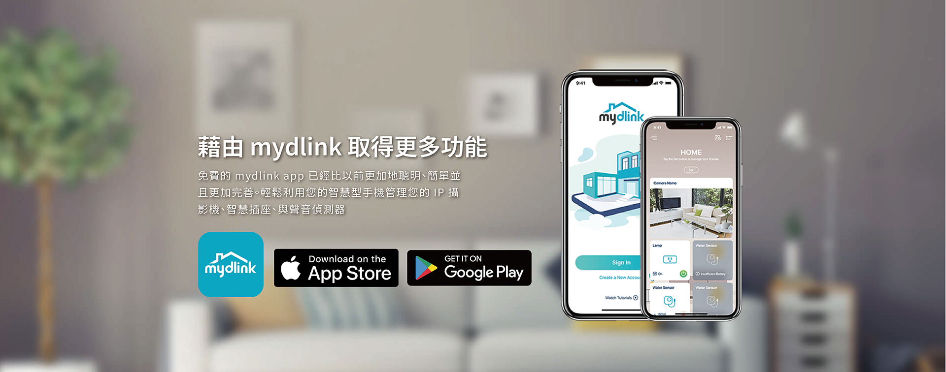 • 隱私模式:輕鬆使用mydlink app關閉您的攝影機