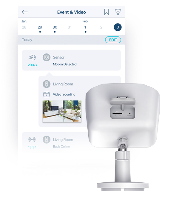 Alerts you when a person, motion, or sound is detected with mobile or tablet push notifications and starts recording.