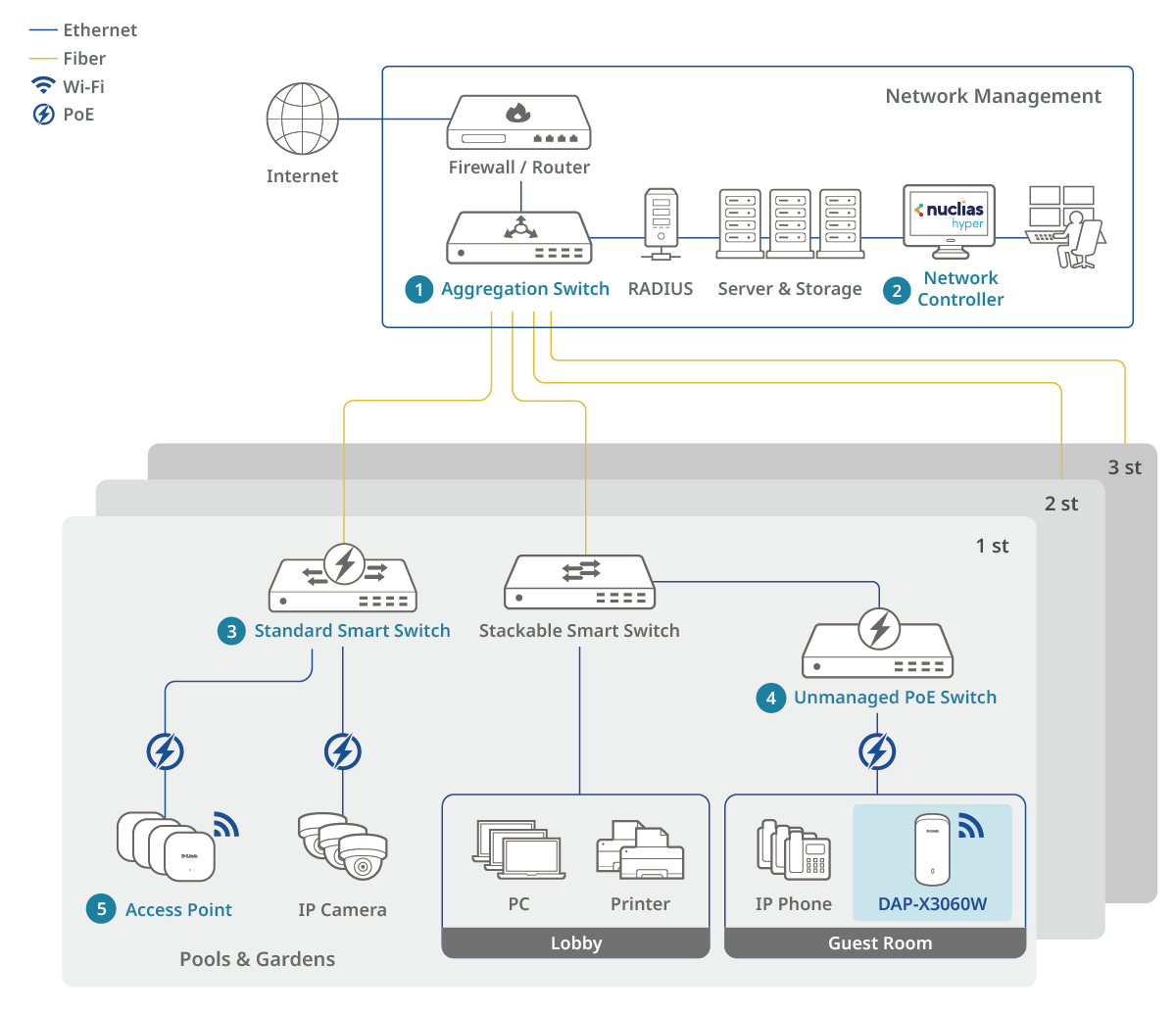 Easily automate, monitor, and scale your network with centralized management via Nuclias Network Controller