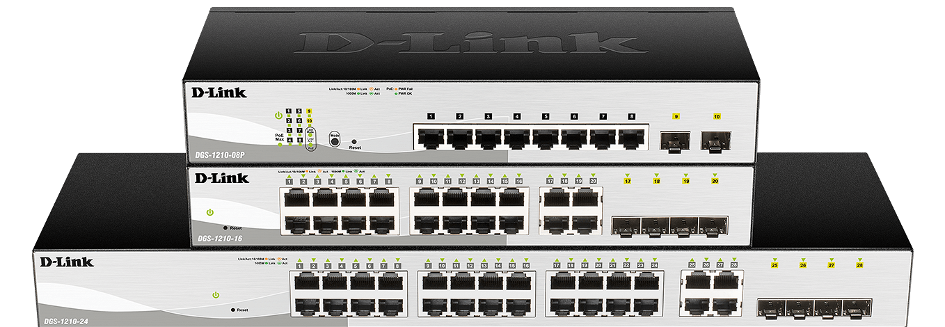 With increased PoE output and advanced Layer 2 management and security features, D‑Link’s DGS‑1210 Smart Managed Gigabit Switches provide a cost‑efficient and flexible solution for expanding any business network.