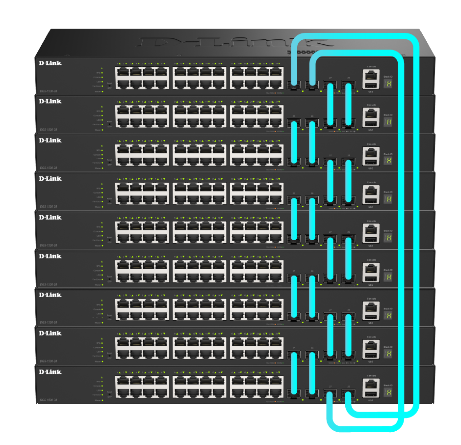 - Physical stacking up to 9 switches